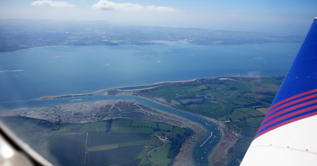 Flying over the Beaulieu River and alongside the Solent, looking over to the Isle of Wight