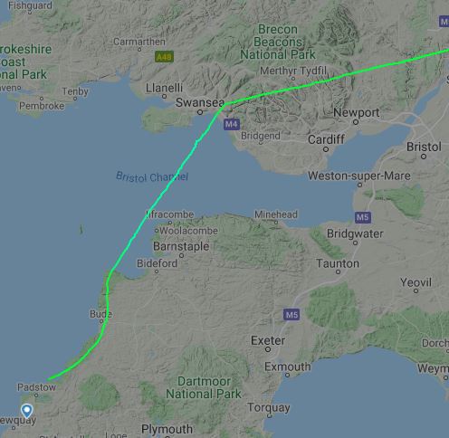 The route down took us over the Brecon Beacons to Swansea, across the Bristol Channel where we climbed to an altitude of 7000ft (which would give us enough of a glide slope to get us back to land if the engine failed), along the North Devon coast, over the River Camel and into Newquay.